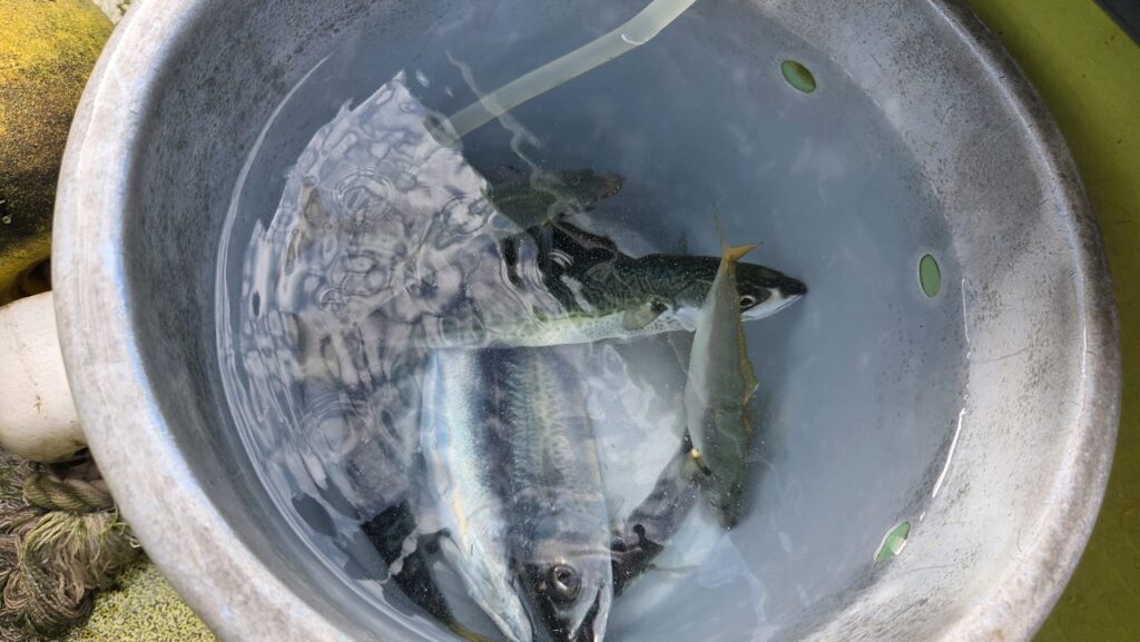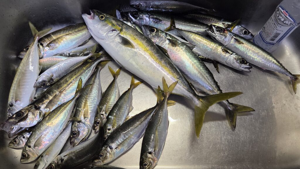 途中ポイント移動した所で、大アジや大サバが釣れてお土産となった。